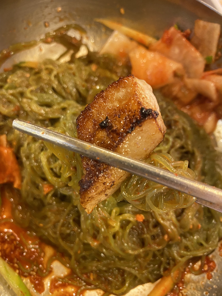 냉면이 나왔으면 고기랑 같이 먹어주는게 도리입니다.